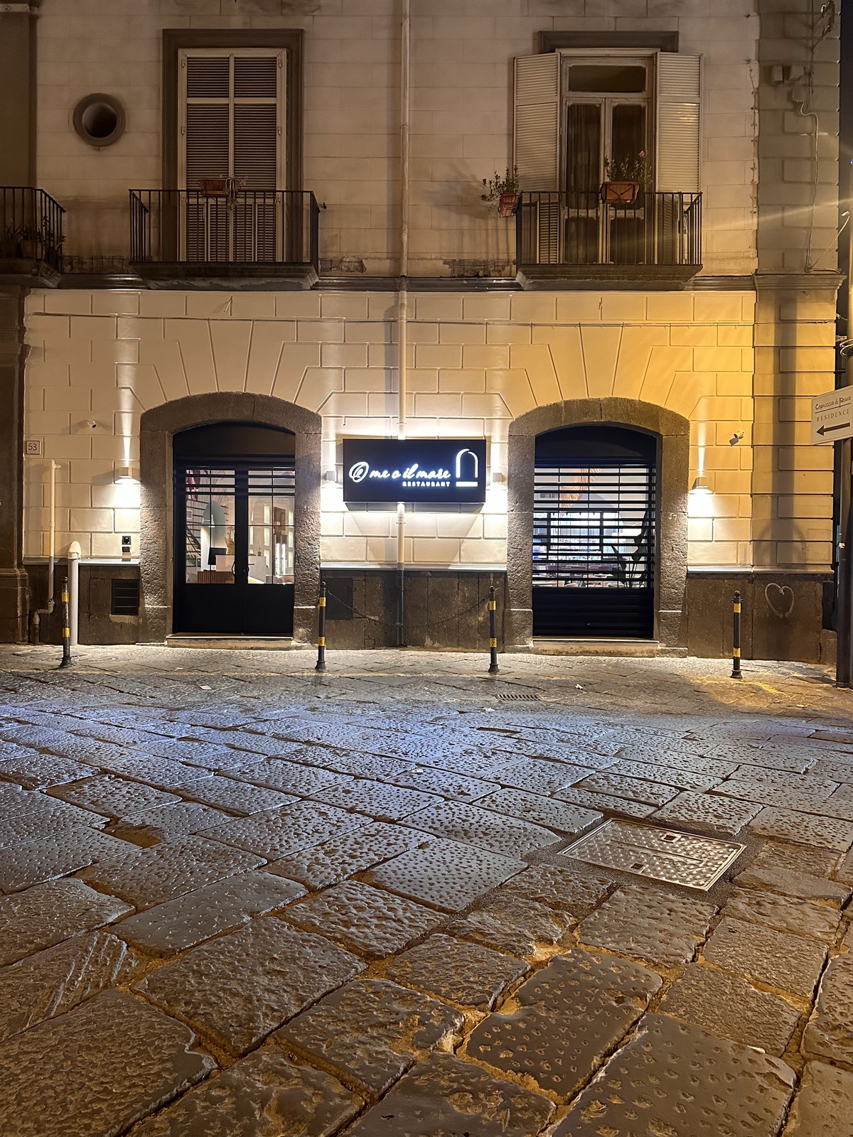 Situato a Gragnano, una cittadina campana tra Napoli e la Costiera Sorrentina, alle pendici dei Monti Lattare, celebre per la produzione di pasta artigianale trafilata al bronzo, grazie a un microclima unico che unisce mare, sole e vento, O me o il mare è un ristorante che incarna l'essenza dell'amore e della passione per la cucina, un tributo dello chef Luigi Tramontano al padre Antonio.
