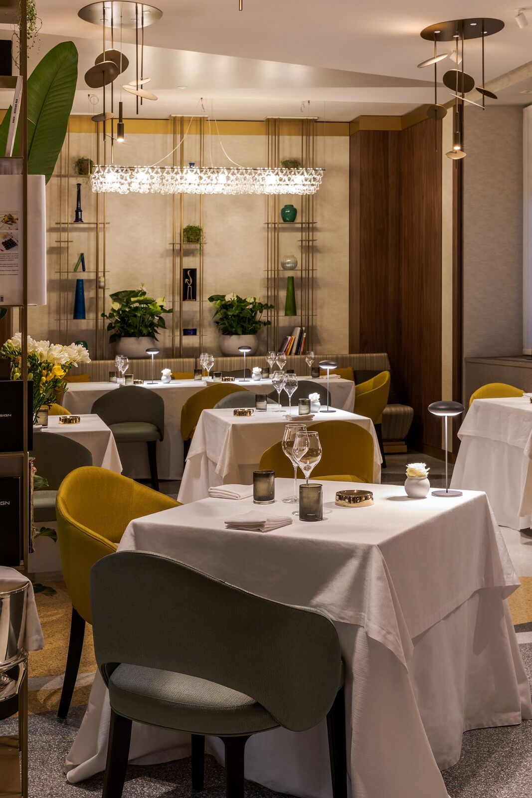 A cena il ristorante stellato propone due menu degustazione, Tradizione e Innovazione e Menu Creativo, e la possibilità di selezionare piatti alla carta. Ad affiancare lo chef troviamo l'Executive Chef Giacomo Lovato, la Sous Chef Alice Locatelli, il Pastry Chef Jung Suyoung e gli chef de partie Samuele Corti, Emmanuel Sant’Elia e Nazrul Islam, elegantemente citati nel menu del ristorante insieme ai membri del team in sala, Mario Ippoliti, Simone Fossati, Buddika Dinesh, Pamela Pettinari e Dragan Mihai, e al back office Luana De Marco.