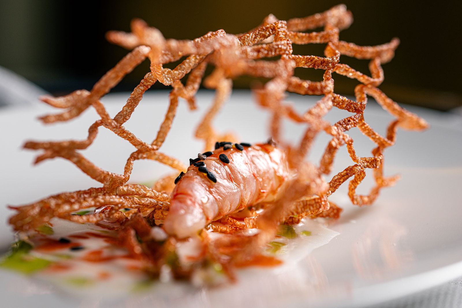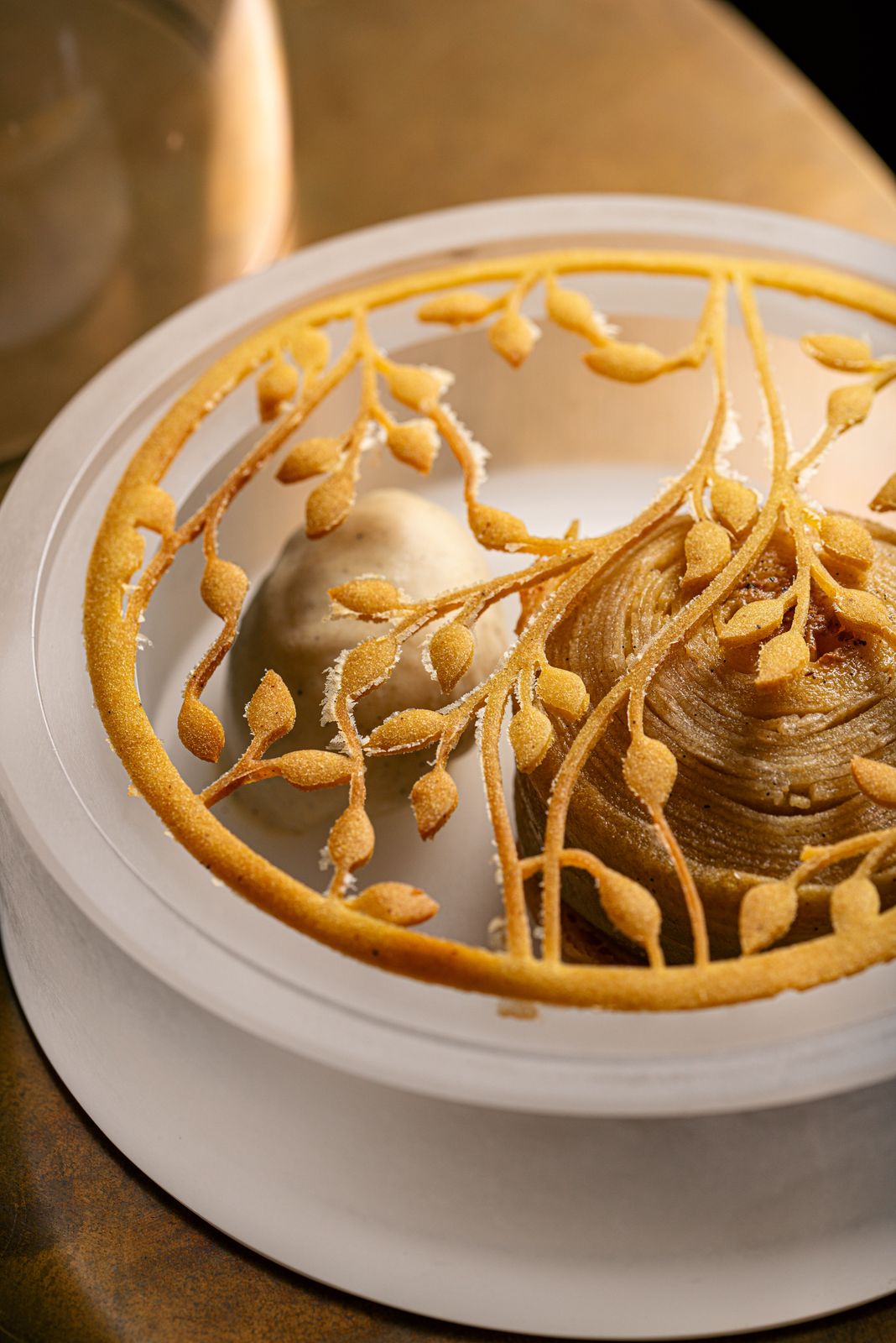 l luogo è intriso della stessa teatralità elegante che caratterizza la celebre “Villa dei Mostri”, tra i più importanti esempi di barocco siciliano: nelle sale del ristorante, linee pulite e luce naturale si fondono con materiali vivi, restituendo un ambiente contemporaneo ma profondamente siciliano. Due sale comunicanti, pensate come atti di un racconto, accolgono e svelano, in un crescendo che accompagna l’esperienza gastronomica con discrezione e intensità.