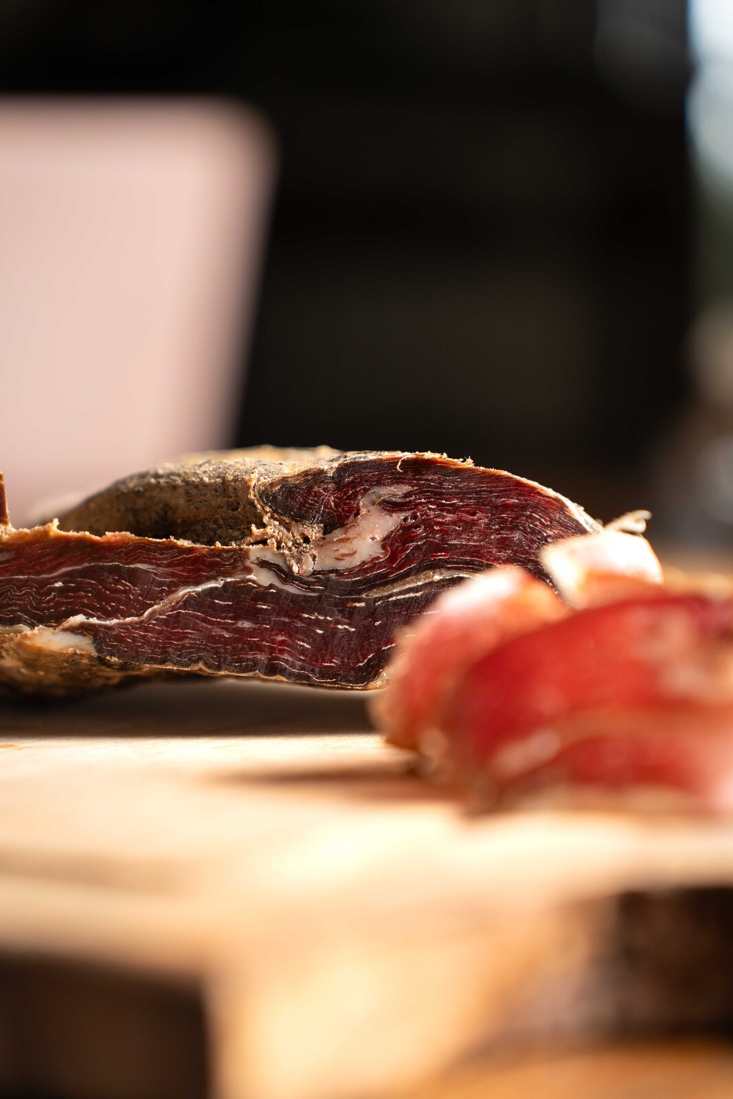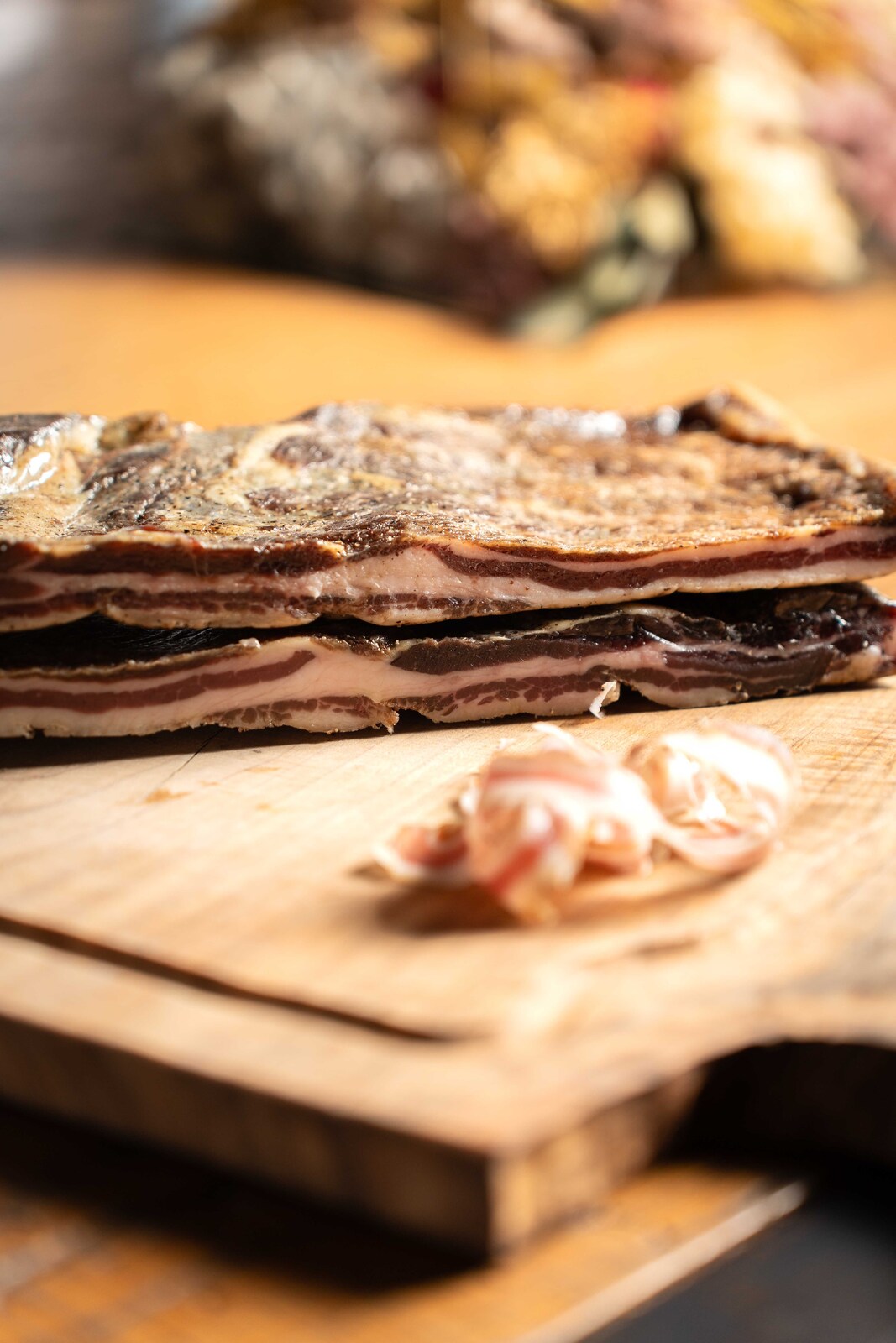 La carta offre, insieme ai suoi piatti, una ricca selezione di stagionati artigianali, realizzati con carni pregiate del territorio e un affinamento curato con passione, spesso dallo stesso ristorante. Vi si trovano, tra gli altri, prosciutti di grigio (una razza suina autoctona toscana allevata soprattutto nella valle del Casentino), pecora, capra, cervo e cinghiale, petti d’anatra, salami di capra e di cinghiale, finocchione di pecora o di cinghiale, capocolli e speck di grigio, con selezione di 2 pezzi a € 15,00, 3 pezzi a € 18,00 e 4 pezzi a € 25,00.