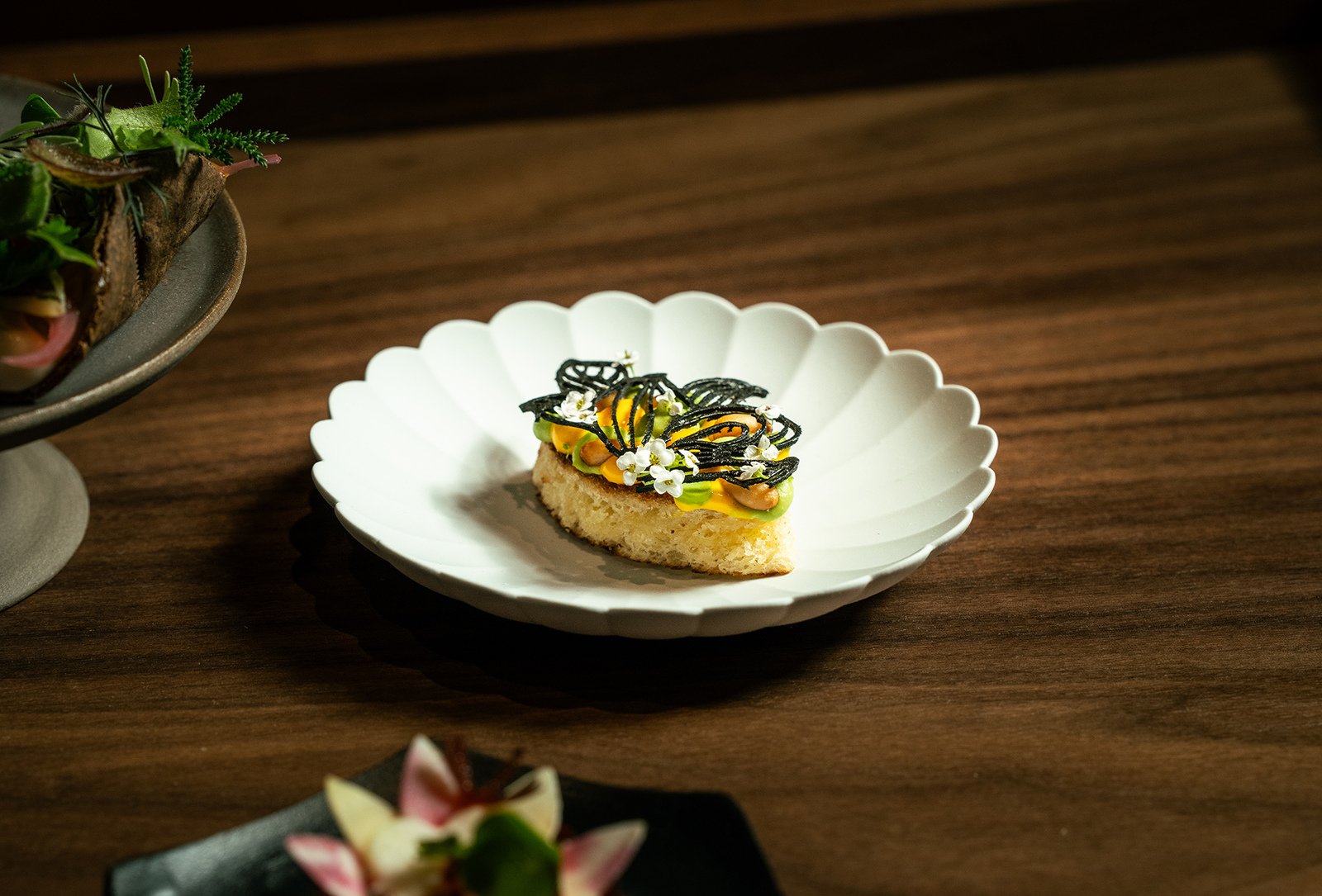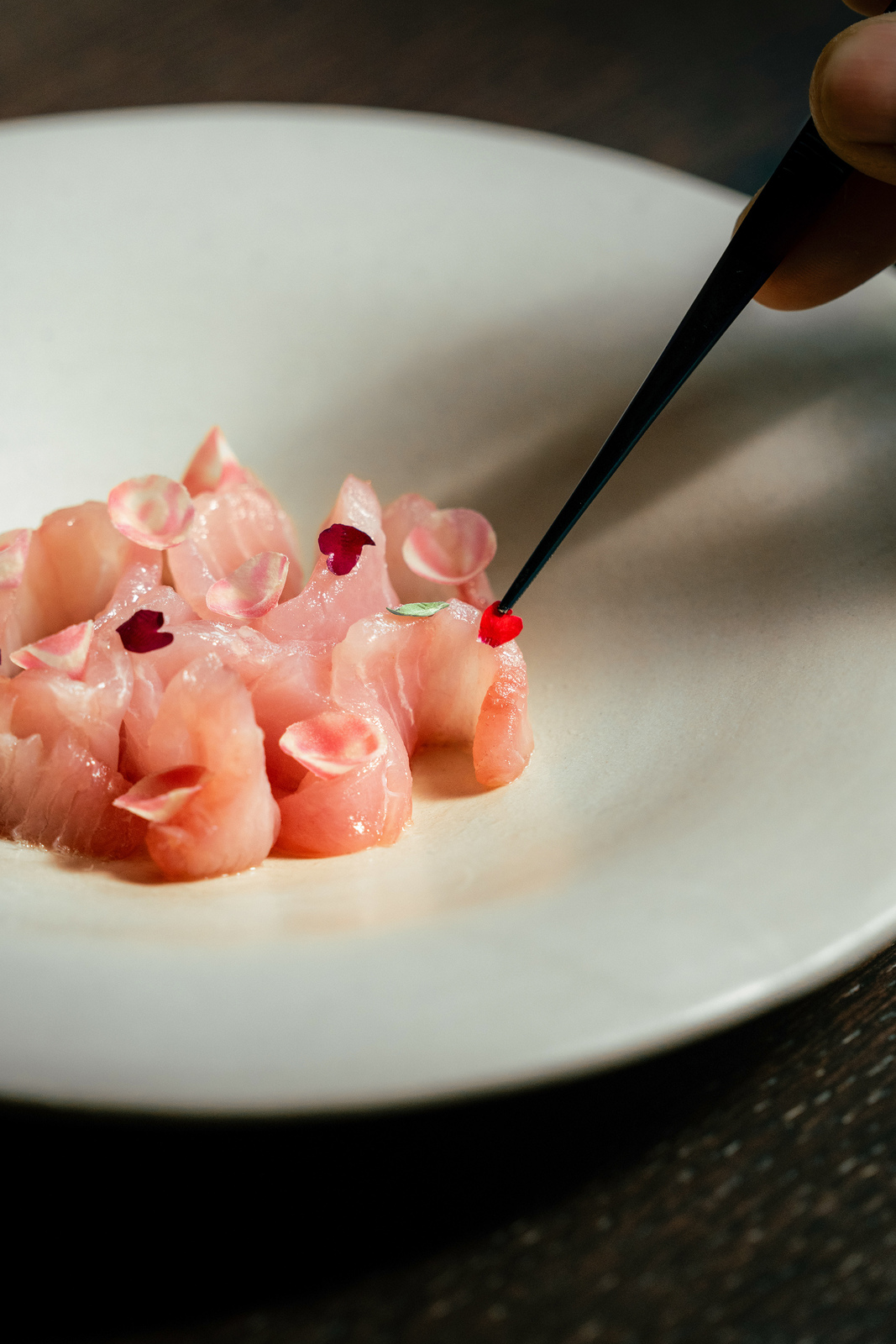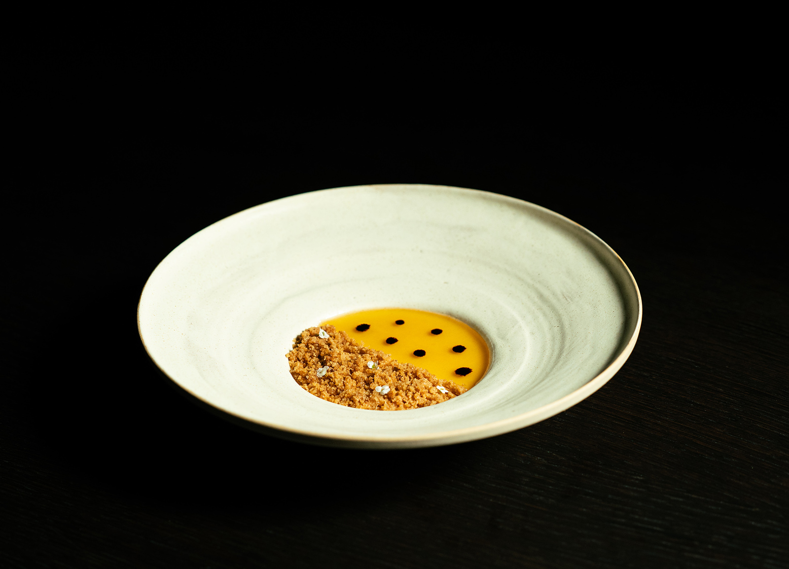 Il ristorante, recentemente inserito nella guida Michelin, è intimo ed esclusivo e accoglie soltanto diciotto ospiti. Gli ambienti, illuminati dalle ampie finestre che si aprono sul giardino, respirano un’atmosfera di sobria raffinatezza, in cui il design contemporaneo incontra la poesia del luogo. È qui che prende forma la visione di Paulo Airaudo, chef argentino di origini italiane, già insignito di sei stelle Michelin distribuite tra Amelia a San Sebastián (2 stelle), Aleia a Barcellona (1 stella), iBai a Donostia/San Sebastián (1 stella) e NOI a Hong Kong (2 stelle). Nel suo percorso figura anche La Bottega a Ginevra, moderna trattoria aperta nel 2015 e premiata nello stesso anno con una stella. La sua firma gastronomica, maturata attraverso esperienze nei più prestigiosi ristoranti del mondo, da Arzak a San Sebastián a The Fat Duck a Bray (Londra) a Magnolia in Italia, si esprime in una cucina che unisce rigore tecnico, sensibilità estetica, abbinamenti di sapori inediti e rispetto per la tradizione.