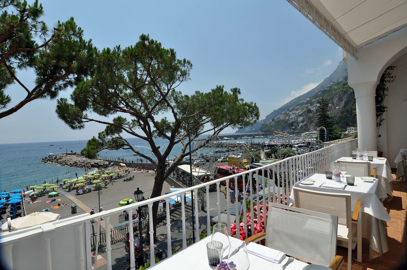 L’atmosfera è arricchita dalla presenza di opere d’arte contemporanea firmate dall’artista Jozef Stancik, che introducono un contrappunto visivo di forte personalità. Il ristorante ha anche una terrazza panoramica affacciata sul Golfo di Salerno, dove gli ospiti possono ritrovare un contatto profondo con l’essenza della Costa Divina, tra il blu del mare e la bellezza ordinata del lungomare di Amalfi.