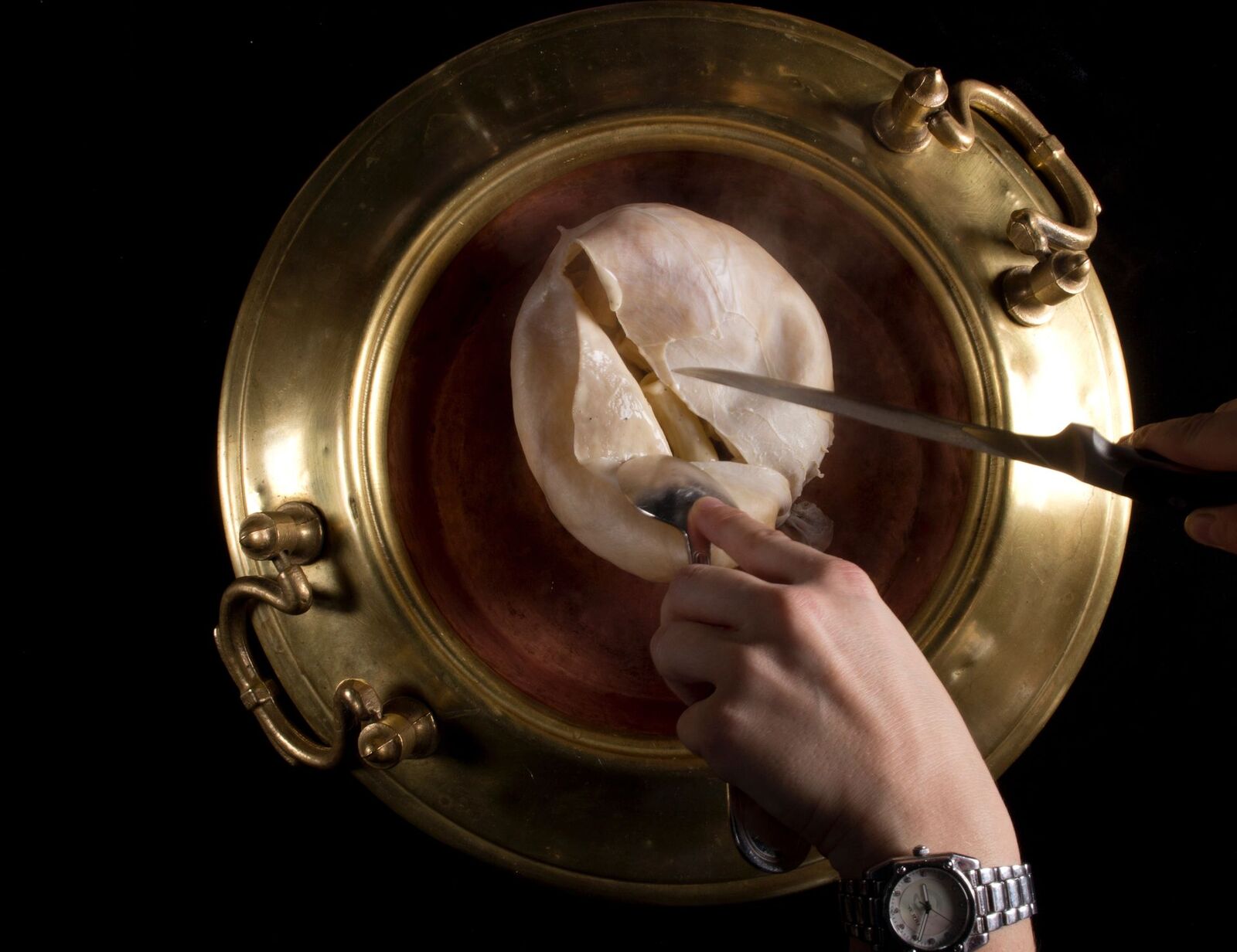 La cucina di Camanini riflette un equilibrio raro tra tecnica e poesia. Nei suoi piatti la materia prima non è mai alterata ma esaltata, rispettata nella sua essenza e trasformata in racconto sensoriale. Le ricette evocano memorie e luoghi: il riso con aglio nero fermentato e frutti di bosco, vera sinfonia silvestre, oppure la celebre Cacio e Pepe cotta in vescica, icona di una romanità trasfigurata in chiave contemporanea. Ogni preparazione è frutto di un legame profondo con il territorio gardesano, che fornisce ingredienti identitari: latte crudo di montagna per il gelato mantecato al momento, Bagòss per i tortellini, o stracchini, sarde e anguilla dal lago e olio e limoni della Riviera.