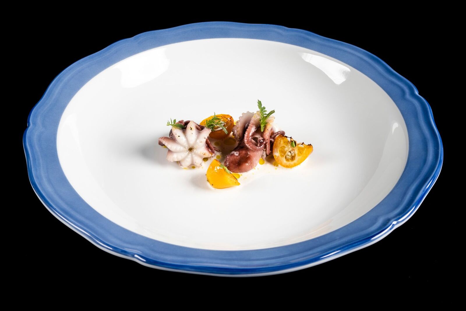 Accanto a questi percorsi, il menu “4 e ½” (€145) offre un itinerario più snello, con piatti come Polpo alla brace con albicocca, pomodoro concentrato e latte di cocco, Pasta al forno ripiena di gamberi, peperone crusco e curry verde e la Melanzana alla parmigiana cotta a 400°C. Anche qui non manca la possibilità di arricchire l’esperienza con piatti supplementari, tra cui i già citati rigatoni e il Rognone “Apicius” al Torchio (€90 per due persone).