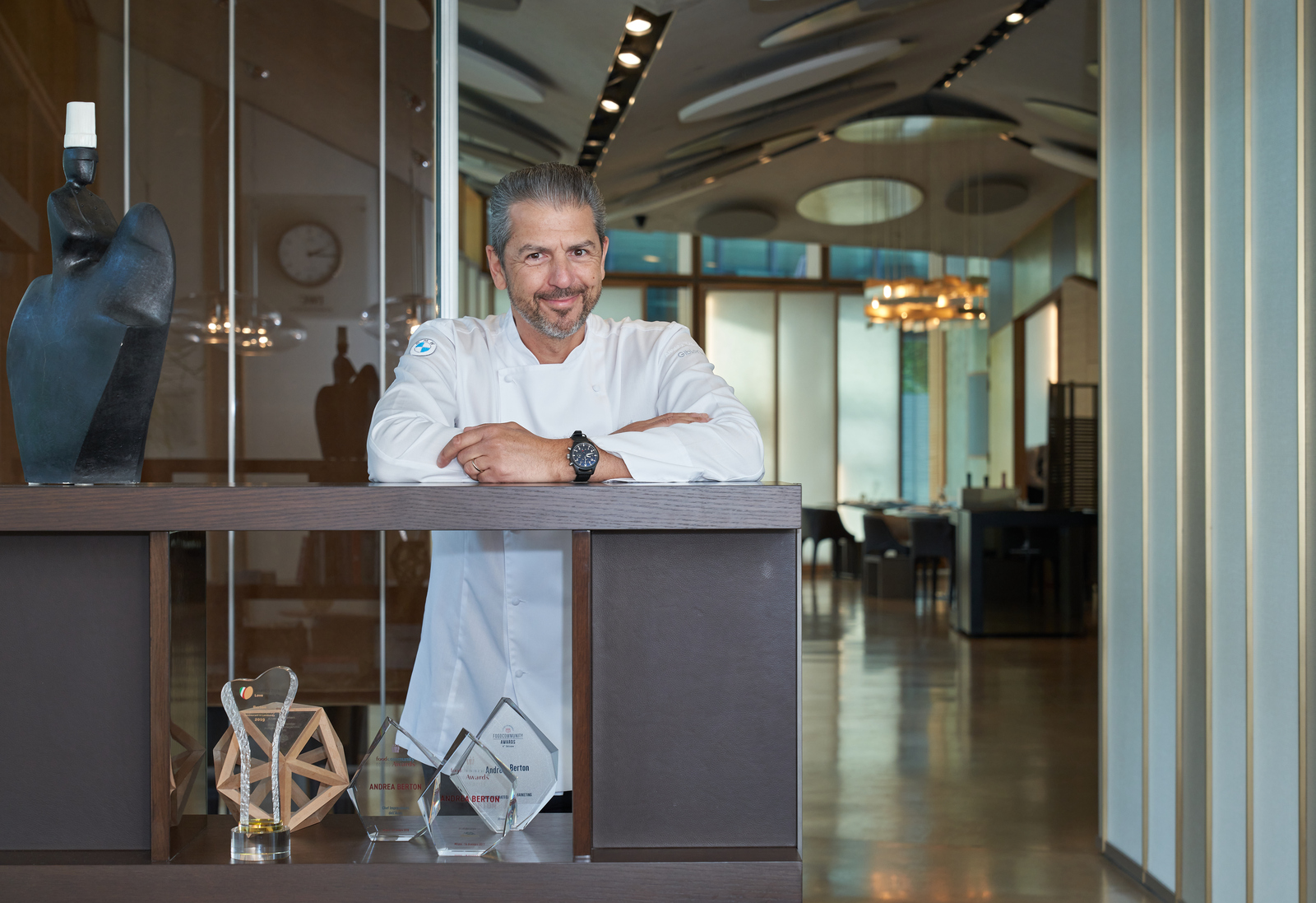 La carriera dello chef è un percorso di rigore e prestigio: dagli esordi negli anni ’90 con Gualtiero Marchesi, fino ai quattro anni accanto ad Alain Ducasse al Louis XV di Montecarlo, passando per il decennio al Ristorante Trussardi alla Scala, dove conquista la prima stella Michelin nel 2008 e la seconda l’anno successivo. Nel 2013 inaugura il Ristorante Berton a Milano, guadagnando la stella Michelin già nel 2014 e mantenendola negli anni. Seguono nuove sfide: dal 2016 al 2021 il Berton al Lago, anch’esso premiato, fino all’inaugurazione nel 2020 del ristorante sottomarino H2O alle Maldive. Parallelamente, lo chef firma progetti internazionali, dalle Alpi svizzere a Dubai, dal Forte Village in Sardegna al Cristallo di Cortina, confermando un percorso di costante riconoscimento internazionale.