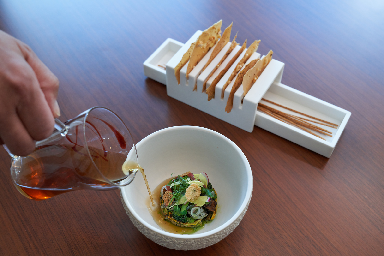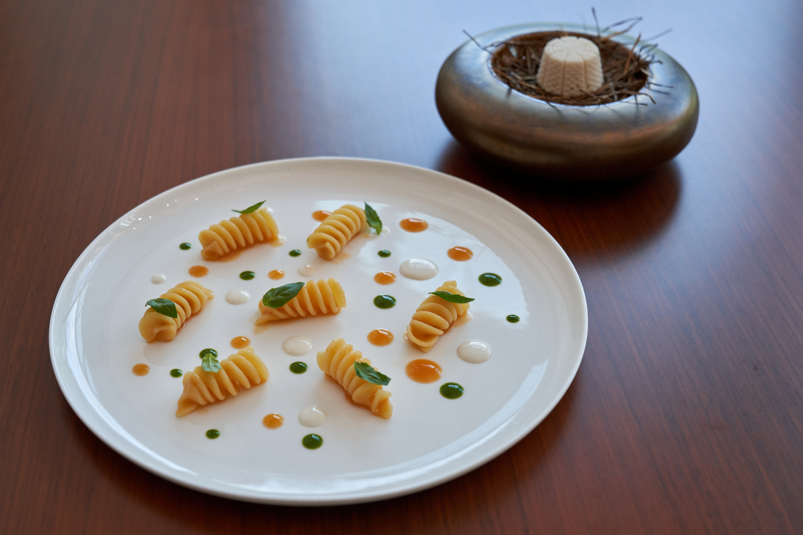 Al Ristorante Berton lo chef propone una cucina contemporanea, ricercata e creativa, in cui i sapori restano sempre leggibili, anche quando la tecnica si fa sofisticata. Ogni piatto nasce da una ricerca attenta e dalla valorizzazione della stagionalità e al centro dell’esperienza gastronomica c’è l’ingrediente, esplorato nella sua essenza e nella sua storia, con l’obiettivo di raggiungere un equilibrio preciso tra sapori e consistenze. Emblema di questa filosofia è il percorso degustativo “Non solo Brodo”, che ha ridefinito il ruolo del brodo trasformandolo in protagonista.