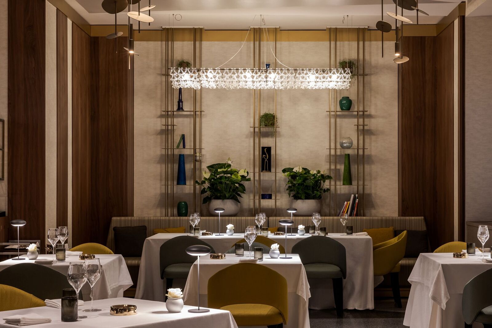 A cena il ristorante stellato propone due menu degustazione, Tradizione e Innovazione e Menu Creativo, e la possibilità di selezionare piatti alla carta. Ad affiancare lo chef troviamo l'Executive Chef Giacomo Lovato, la Sous Chef Alice Locatelli, il Pastry Chef Jung Suyoung e gli chef de partie Samuele Corti, Emmanuel Sant’Elia e Nazrul Islam, elegantemente citati nel menu del ristorante insieme ai membri del team in sala, Mario Ippoliti, Simone Fossati, Buddika Dinesh, Pamela Pettinari e Dragan Mihai, e al back office Luana De Marco.