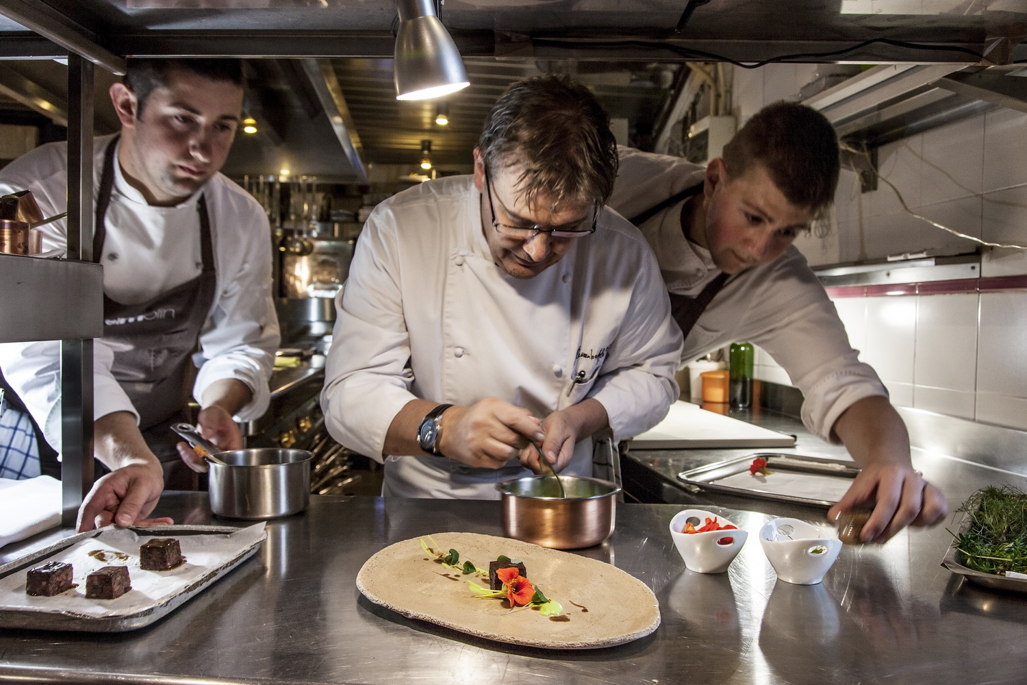 Chef Gilmozzi propone quella che definisce una cucina dolomitica contemporanea: essenze, animali e frutti della montagna diventano i protagonisti di piatti che richiamano le antiche ricette di sussistenza alpine, rilette con sensibilità moderna. Un approccio che non indulge all’effetto spettacolare, ma trova nella schiettezza e nell’equilibrio la sua forza espressiva.